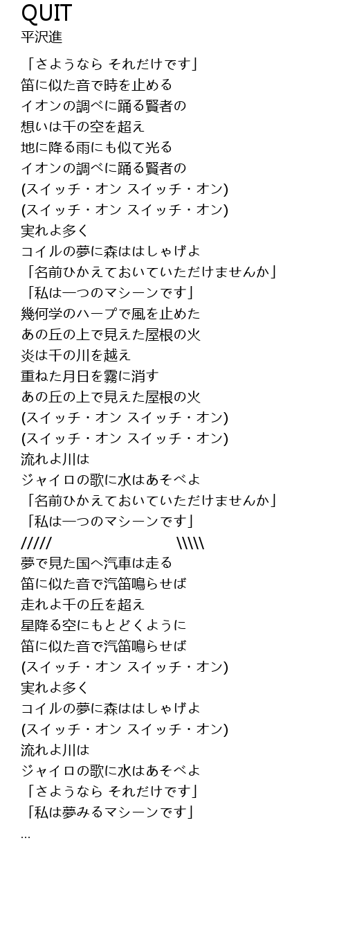 | [04:23.290] | コイルの夢に森ははしゃげよ |