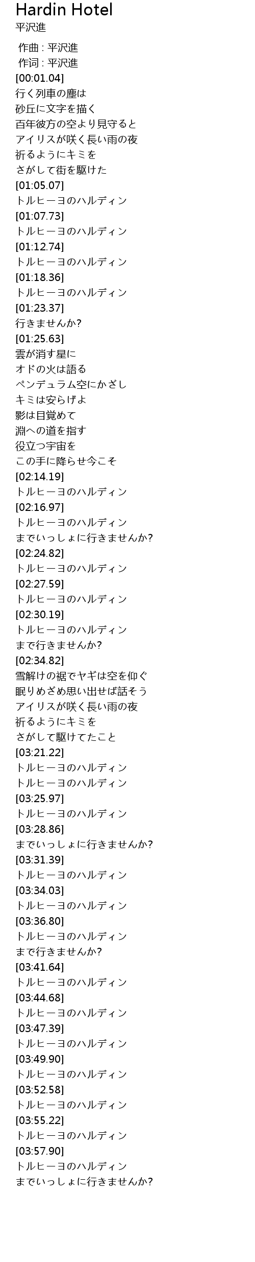| [03:32.01] | トルヒーヨのハルディン |