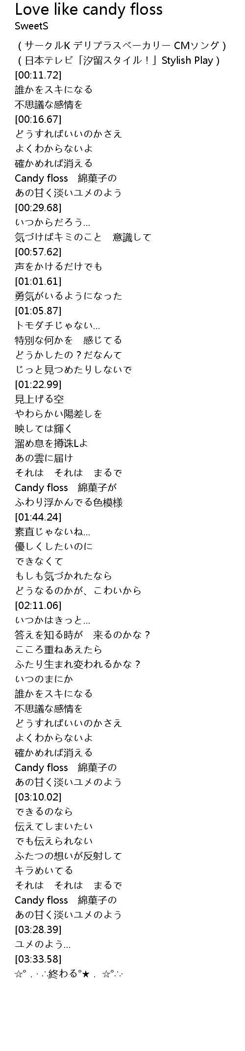 | [03:23.77] | Candy floss 綿菓子の |