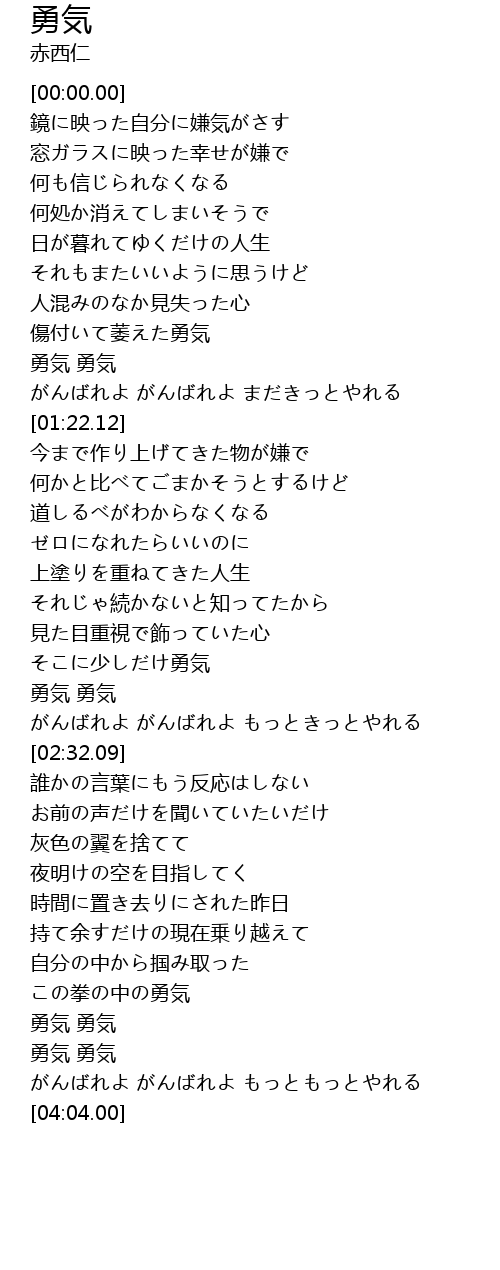 | [01:05.00] | 勇気 勇気 |