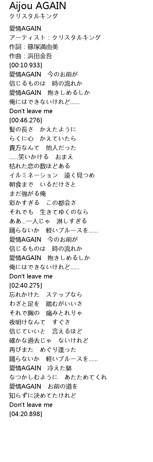 | [03:42.368] | 愛情AGAIN 冷えた躰 |