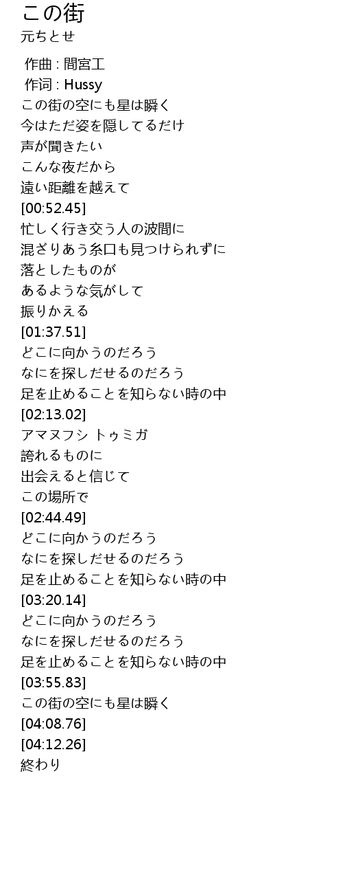 | [01:08.51] | 忙しく行き交う人の波間に |