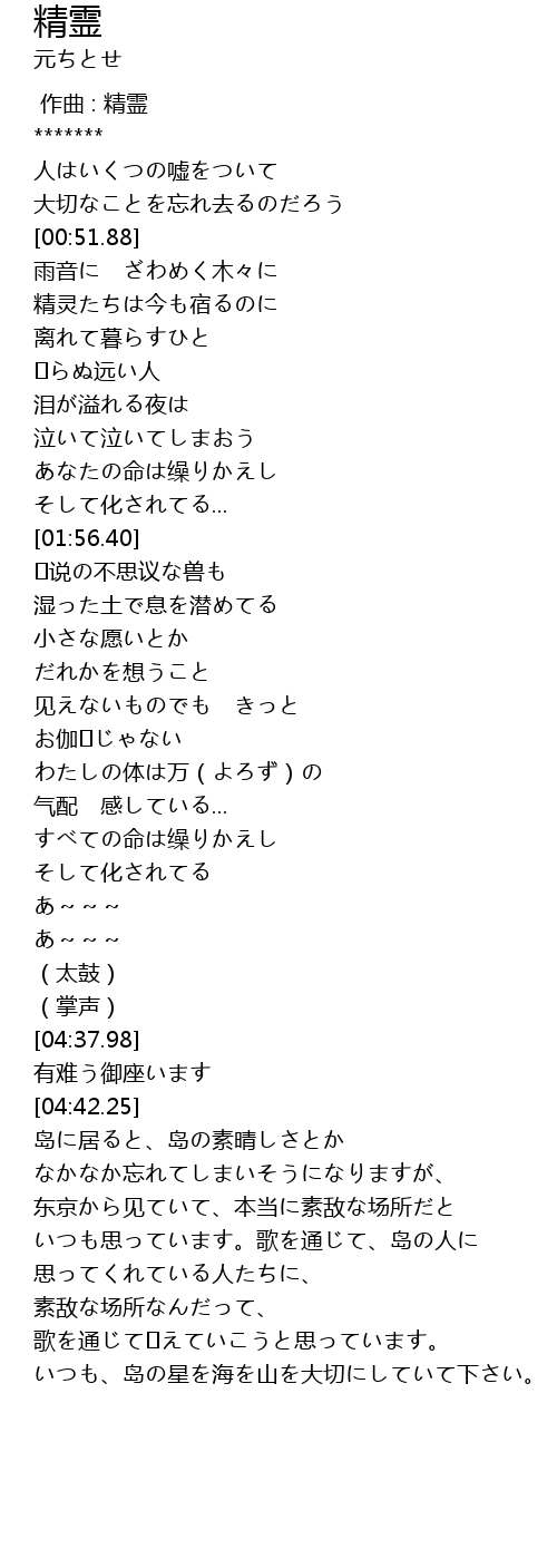| [05:13.99] | いつも、岛の星を海を山を大切にしていて下さい。 |