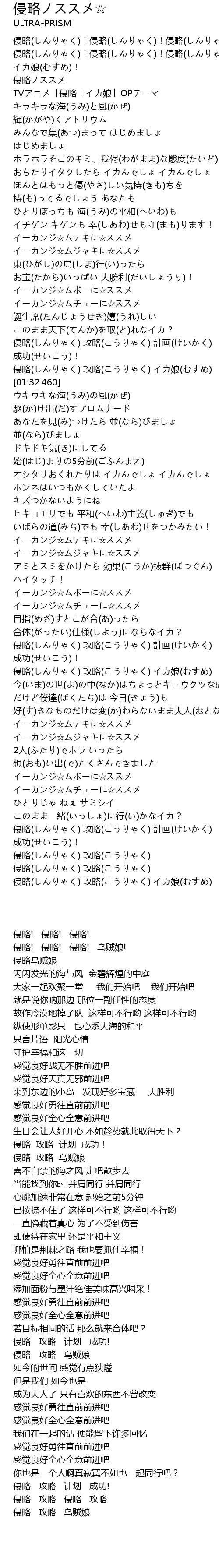 | [00:04.010] | 侵略(しんりゃく)!侵略(しんりゃく)!侵略(しんりゃく)! |