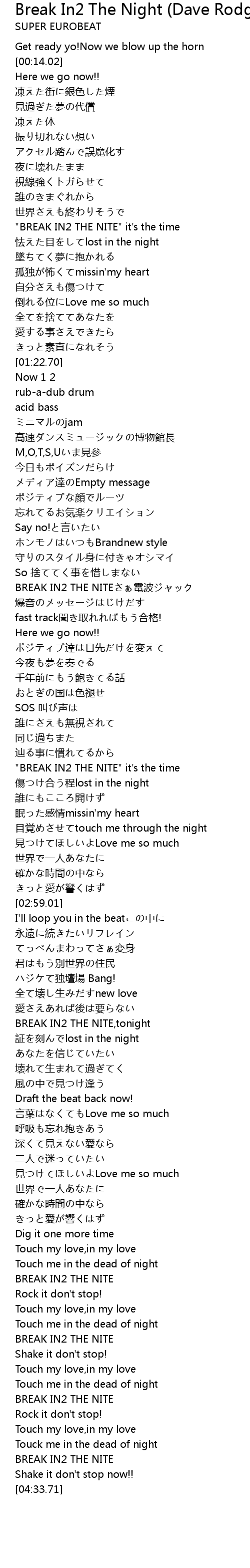 | [04:16.82] | BREAK IN2 THE NITE |