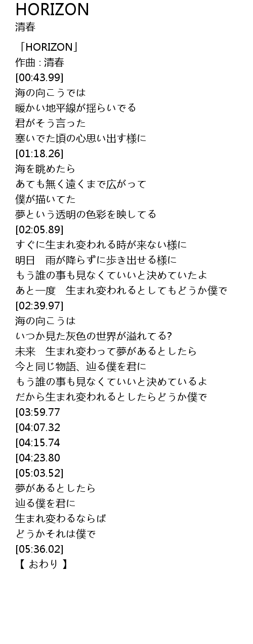 | [00:03.99] | 「HORIZON」 |