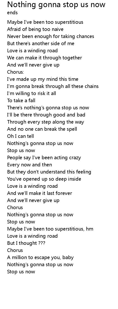 | Nothing's gonna stop us now | |
