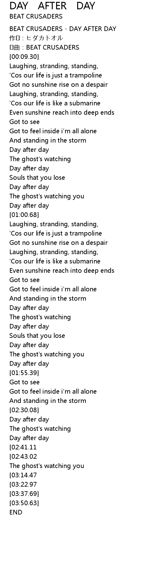 | [00:00.00] | BEAT CRUSADERS DAY AFTER DAY |