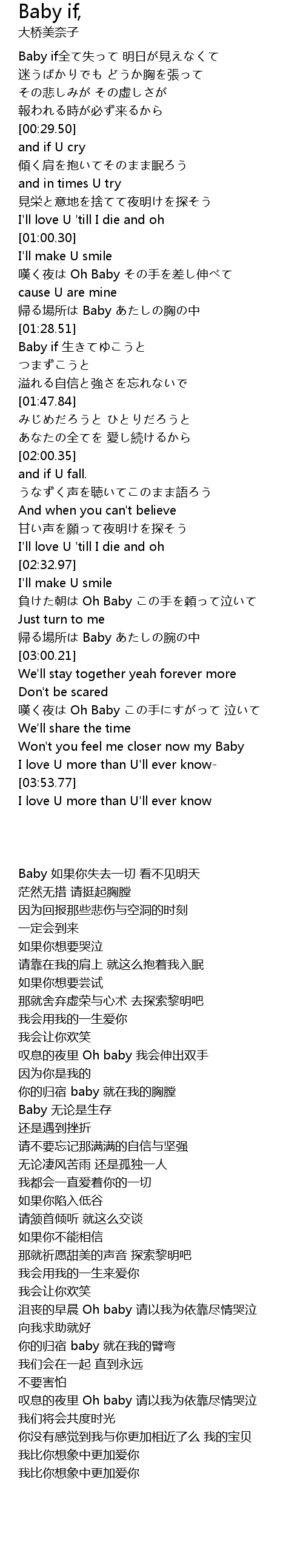 | [03:43.87] | Won't you feel me closer now my Baby |