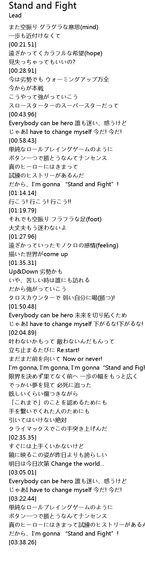 | [03:35.47] | だから、I'm gonna “Stand and Fight”! |
