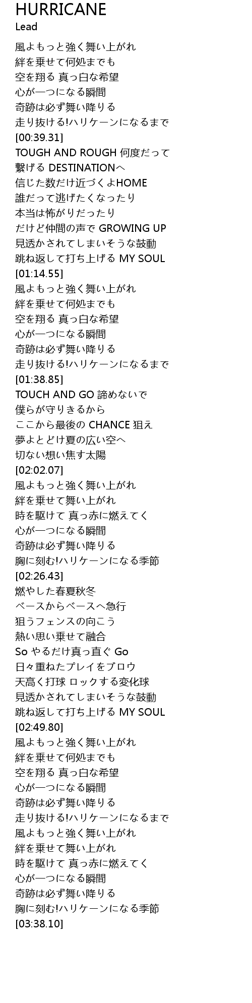 | [03:31.64] | 胸に刻む!ハリケーンになる季節 |