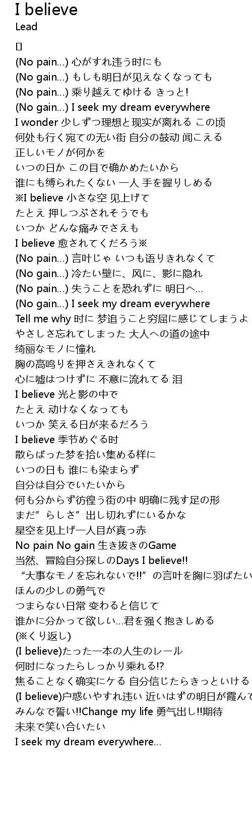 | (I believe)户惑いやすれ违い 近いはずの明日が霞んでも… | |