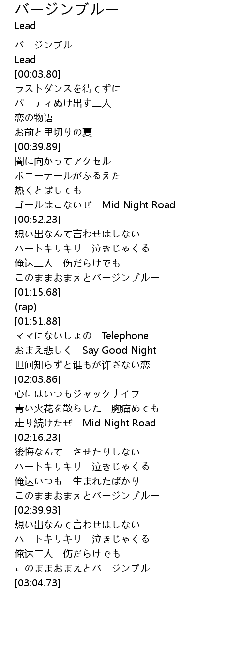 | [00:48.66] | ゴールはこないぜ Mid Night Road |