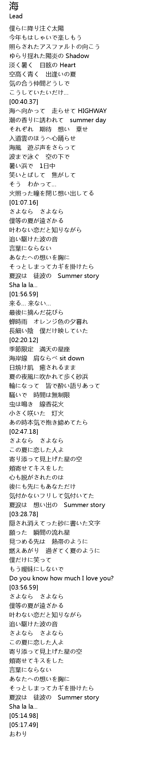 | [00:43.10] | 潮の香りに誘われて summer day |