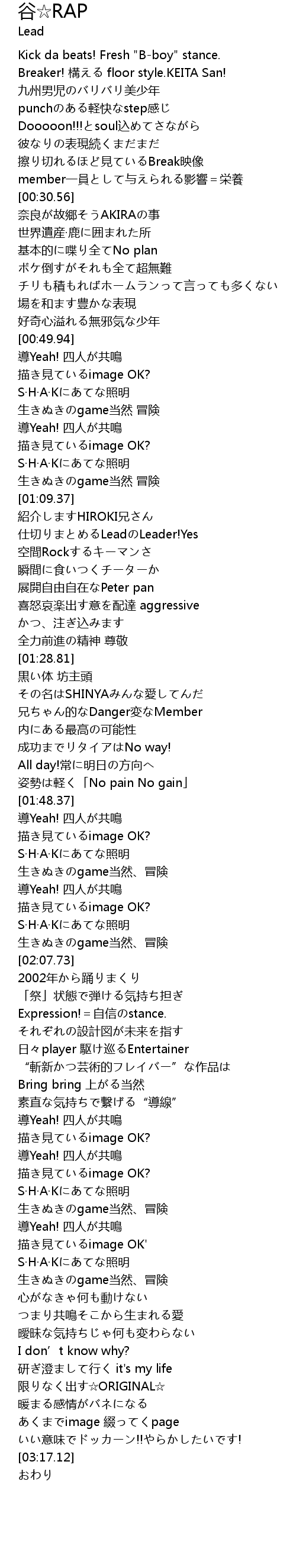| [01:35.15] | その名はSHINYAみんな愛してんだ |