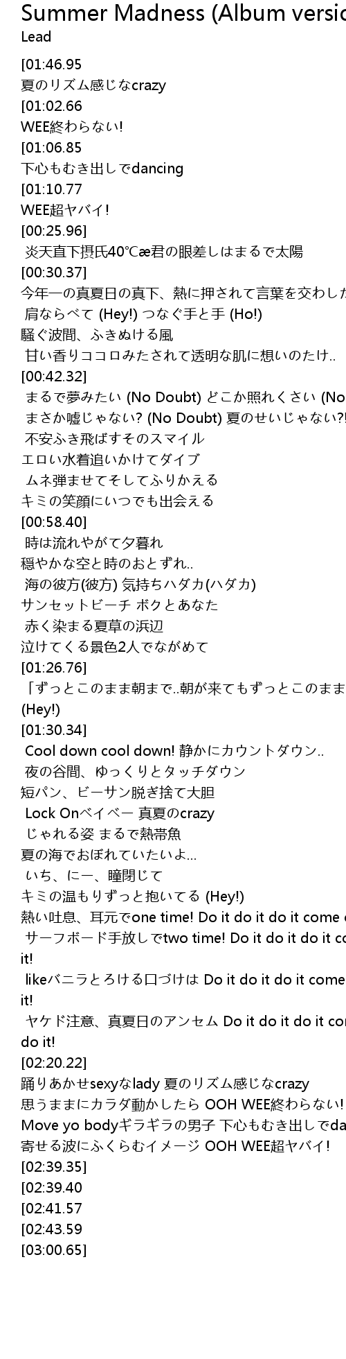 | [02:23.28] | 踊りあかせsexyなlady 夏のリズム感じなcrazy |
