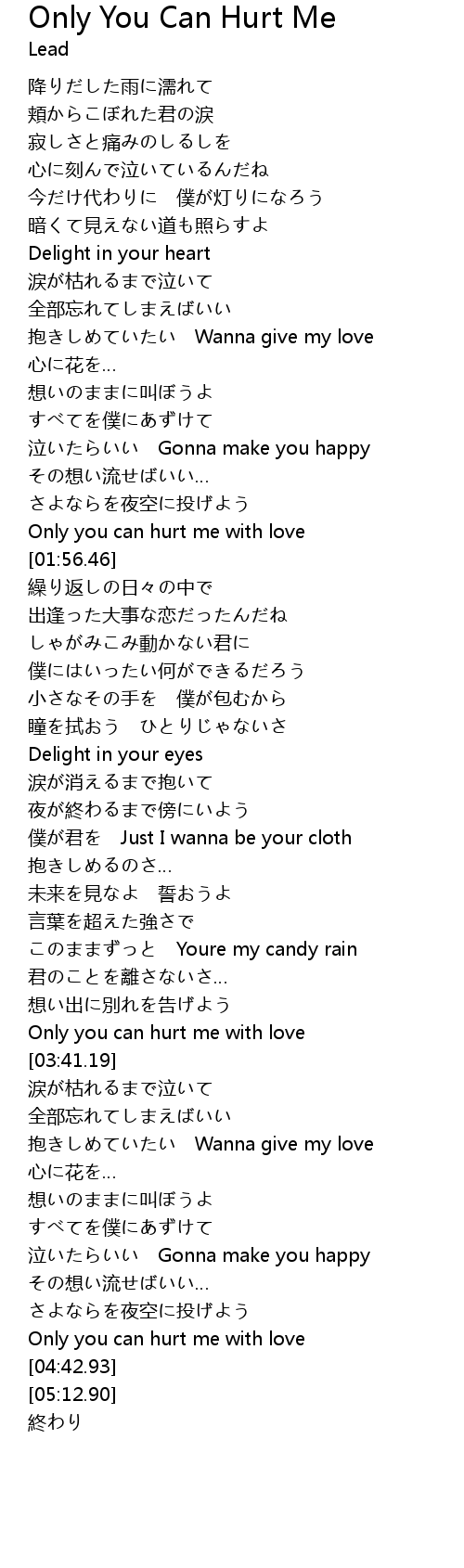 | [04:07.06] | 抱きしめていたい Wanna give my love |