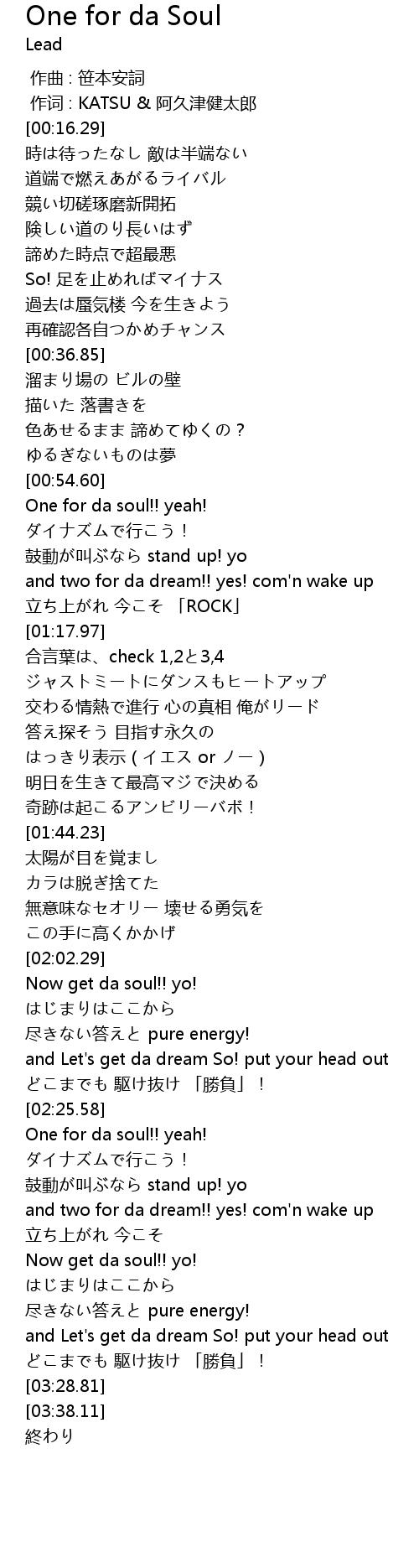 | [03:19.00] | and Let's get da dream So! put your head out |