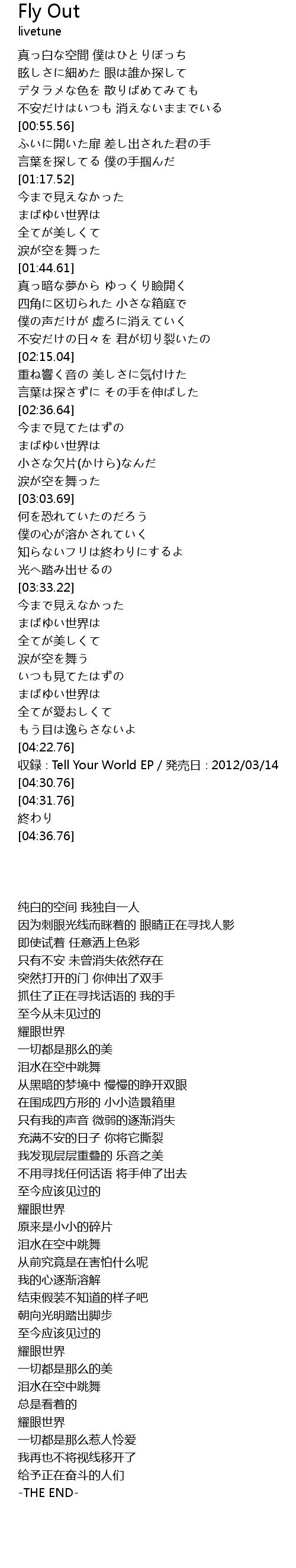 | [04:24.76] | shōu lù Tell Your World EP fā mài rì 2012 03 14 |
