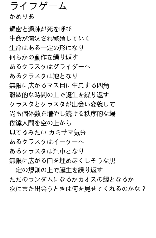 | [01:22.92] | 離散的な時間の上で誕生を繰り返す |