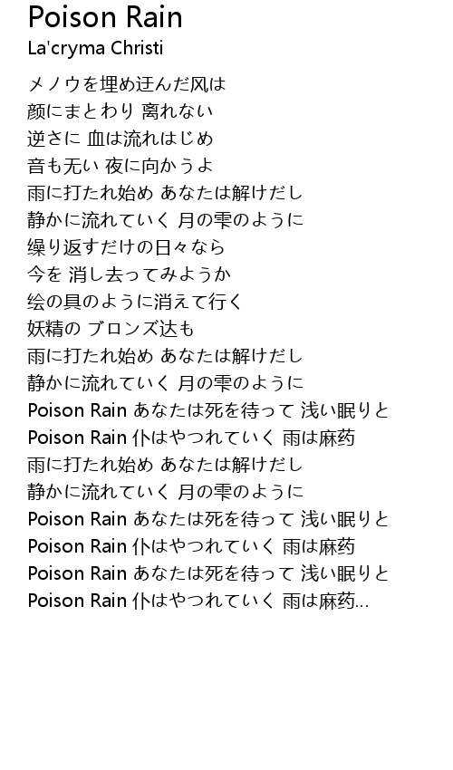 | Poison Rain 仆はやつれていく 雨は麻药… |