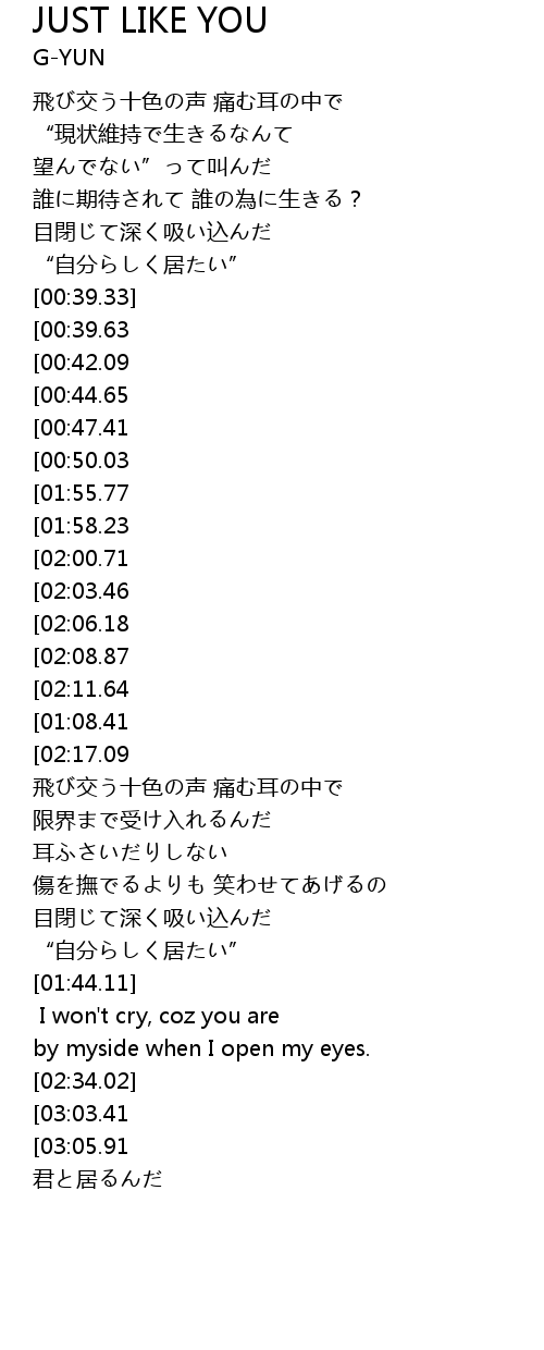 | [03:08.67][03:03.41][02:35.52] | Just like you. Just like you. |