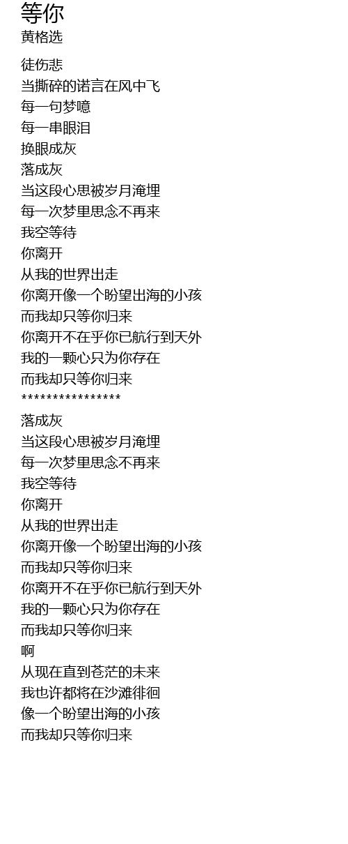 | [02:58.18] | 你离开像一个盼望出海的小孩 |
