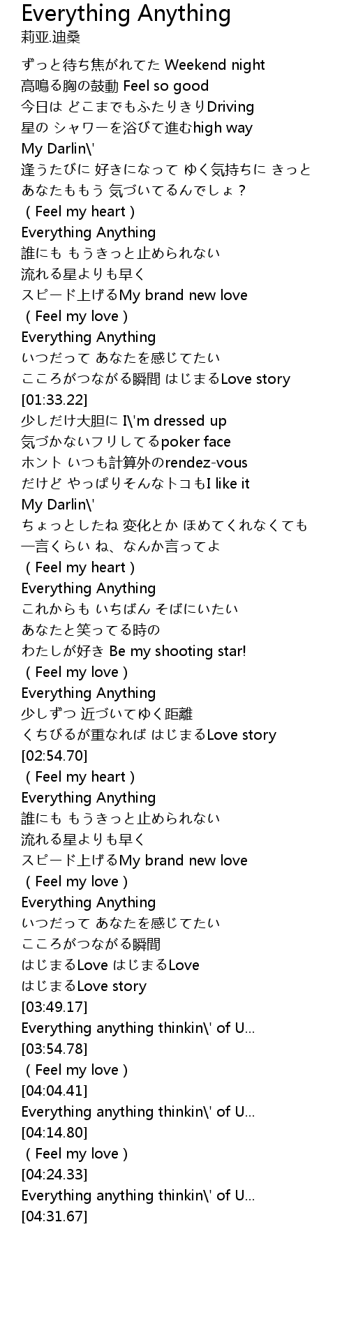 | [04:10.01] | Everything anything thinkin\' of U... |