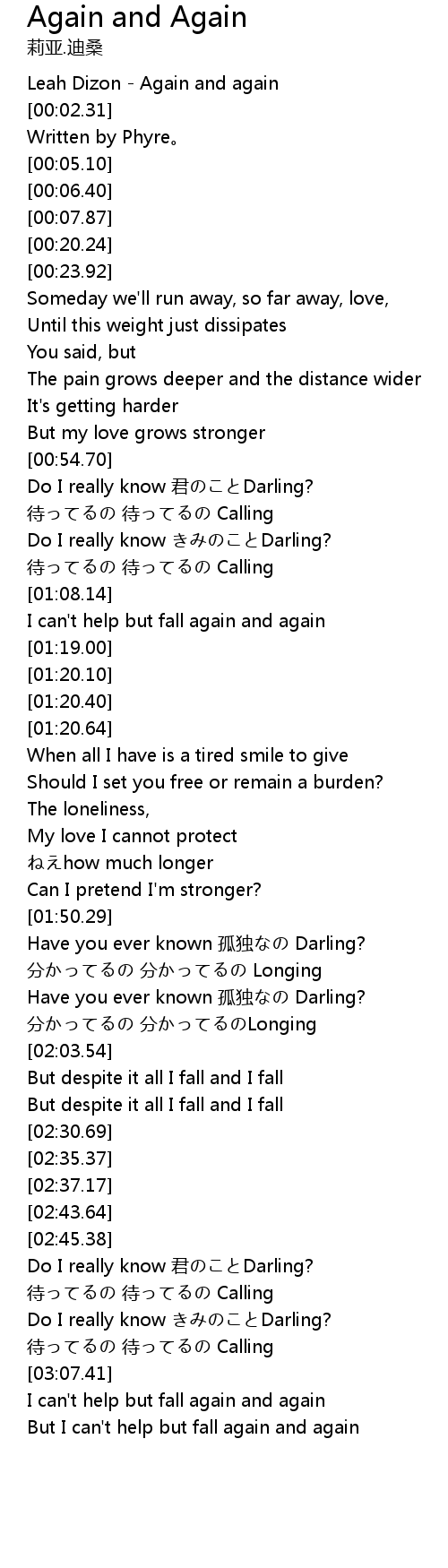 | [00:41.22] | The pain grows deeper and the distance wider |