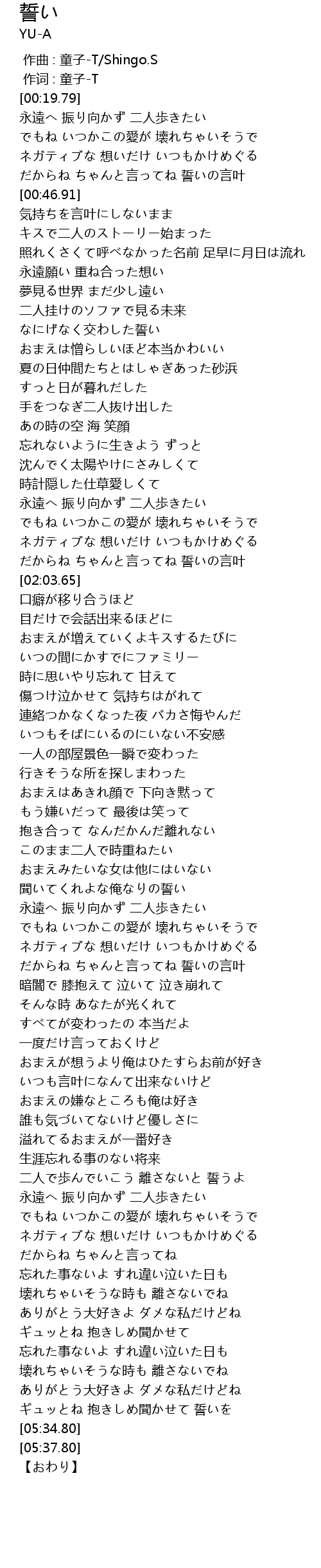 | [00:39.08] | だからね ちゃんと言ってね 誓いの言叶 |
