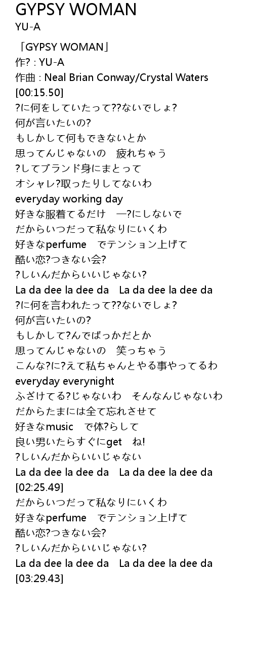 | [00:01.50] | 「GYPSY WOMAN」 |