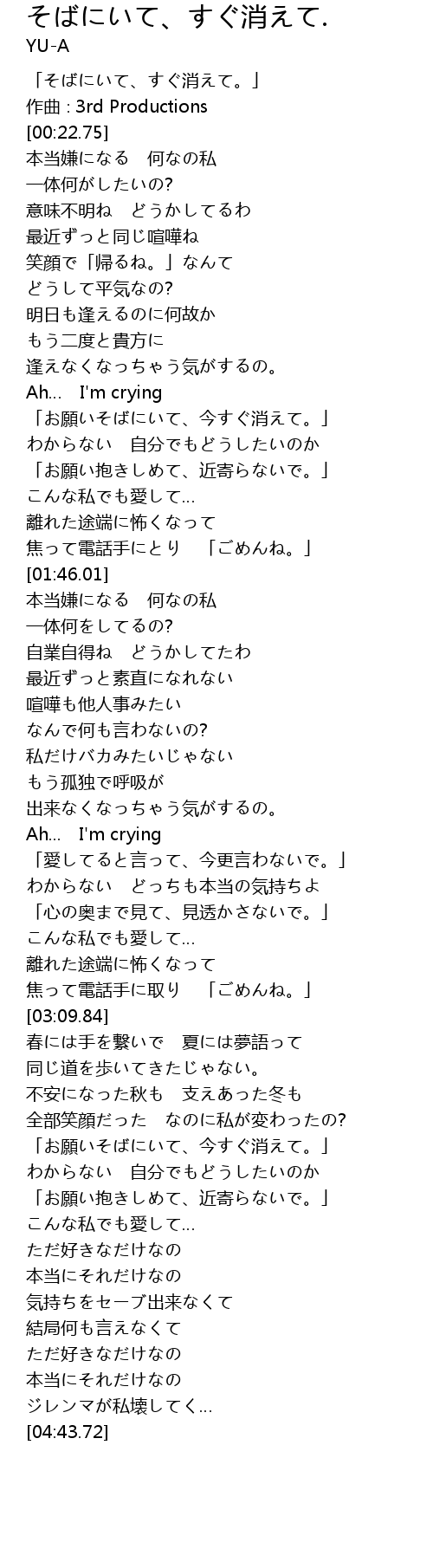 [01:10.56] 「お願いそばにいて、今すぐ消えて。」