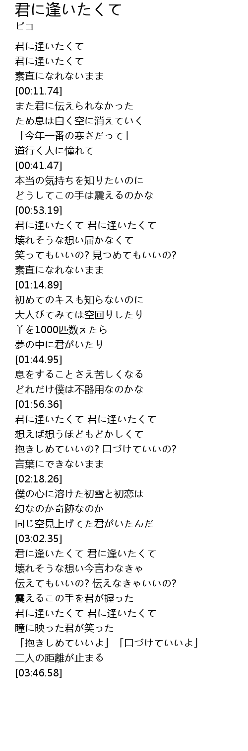 | [01:56.54] | 君に逢いたくて 君に逢いたくて |