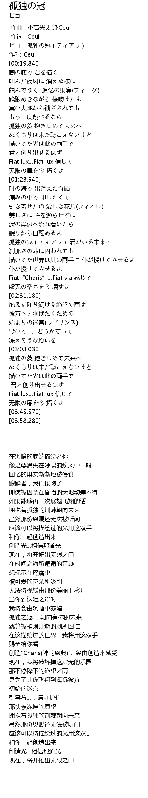 | [00:00.000] | ピコ - 孤独の冠(ティアラ) |