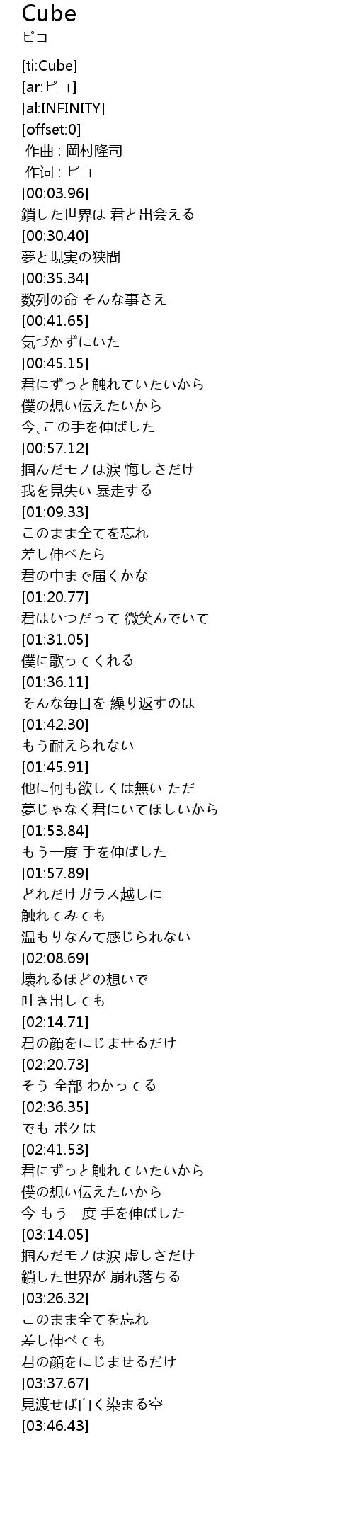 | [03:21.54] | 鎖した世界が 崩れ落ちる |