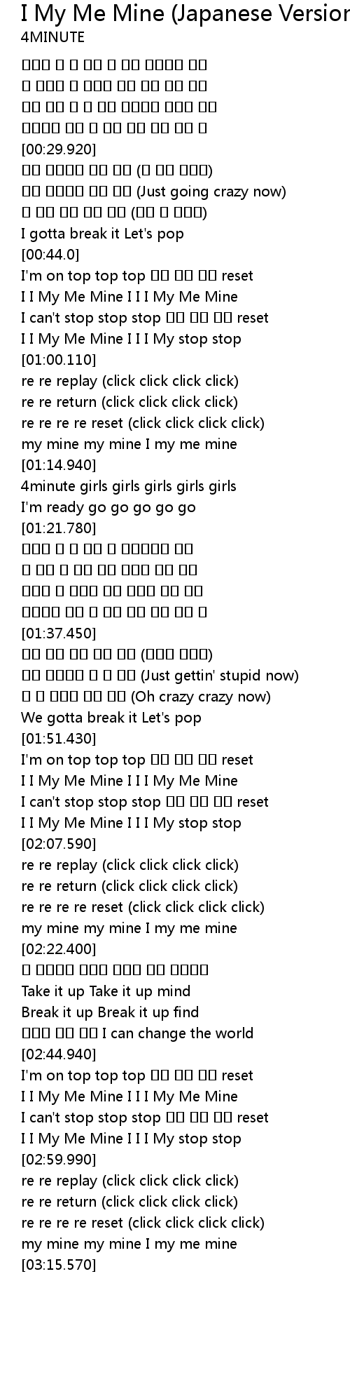 | [02:56.690] | I I My Me Mine I I I My stop stop |