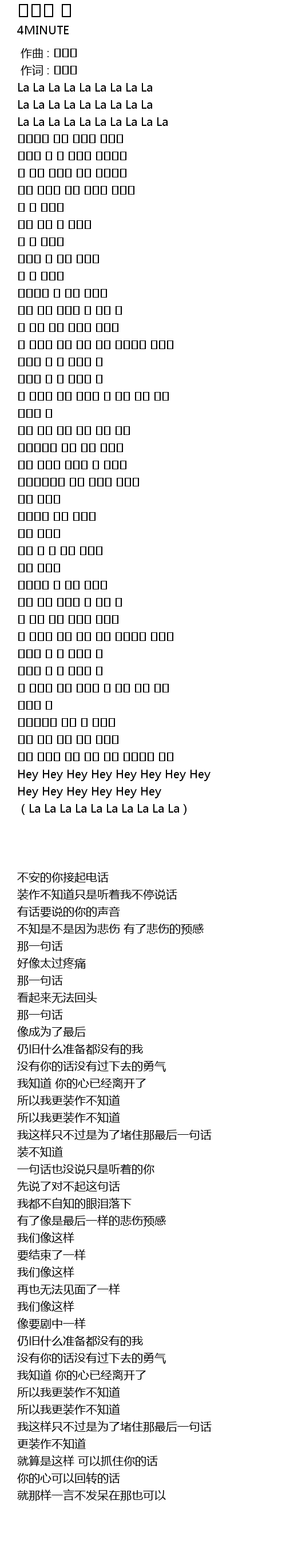 | [02:39.340] | 난 알아요 이미 그대 맘은 떠나버린 거겠죠 |