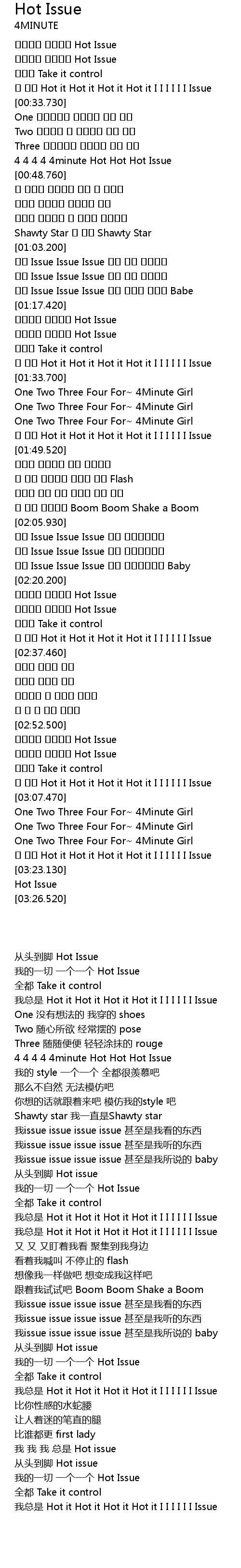 | [00:45.460] | 4 4 4 4 4minute Hot Hot Hot Issue |