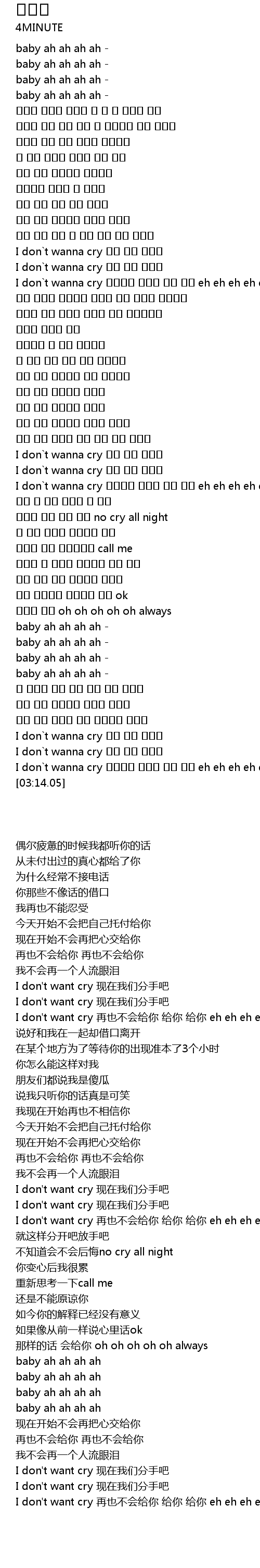 | [03:06.84] | I don`t wanna cry 너한테는 안줄래 줄래 줄래 eh eh eh eh eh |