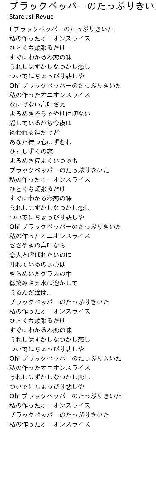 | Song | ブラックペッパーのたっぷりきいた私の作ったオニオンスライス |