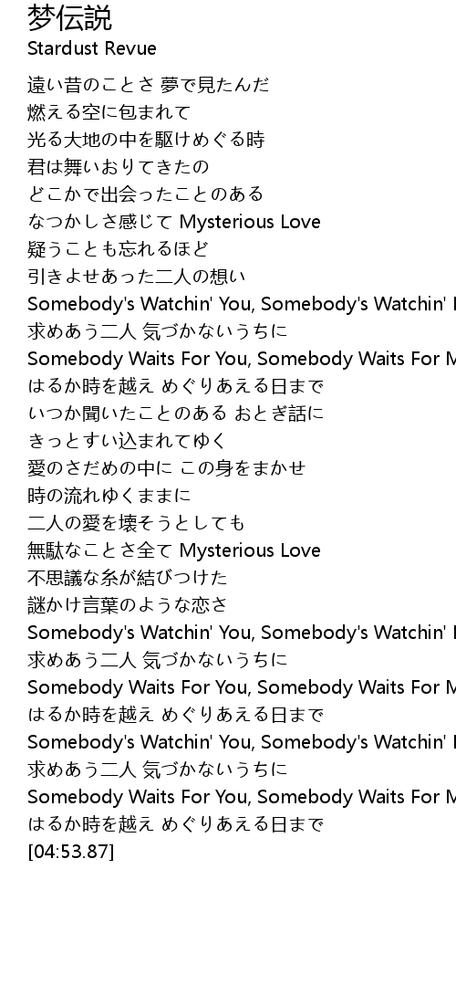 | [04:12.80] | Somebody's Watchin' You, Somebody's Watchin' Me |