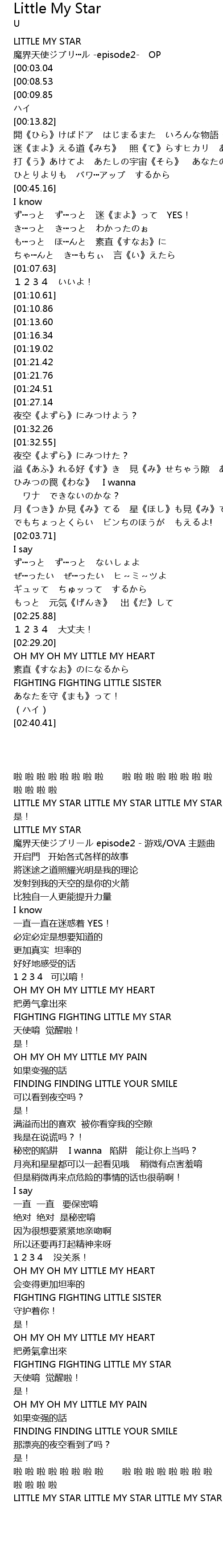 | [03:21.04][00:09.85] | LITTLE MY STAR LITTLE MY STAR LITTLE MY STAR |
