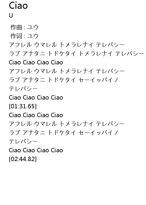 | [01:58.27] | Ciao Ciao Ciao Ciao |