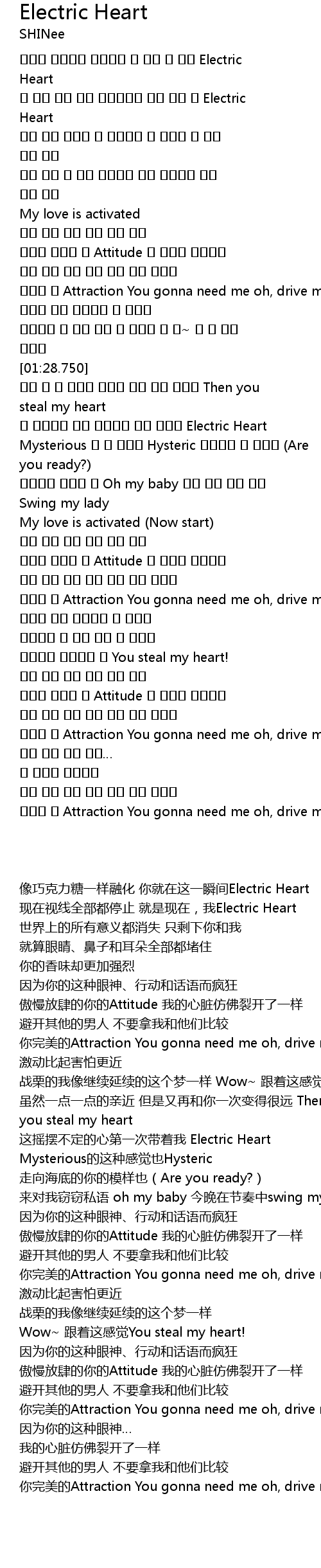 | [01:38.110] | 이 흔들리는 마음 처음으로 나를 이끌어 Electric Heart |
