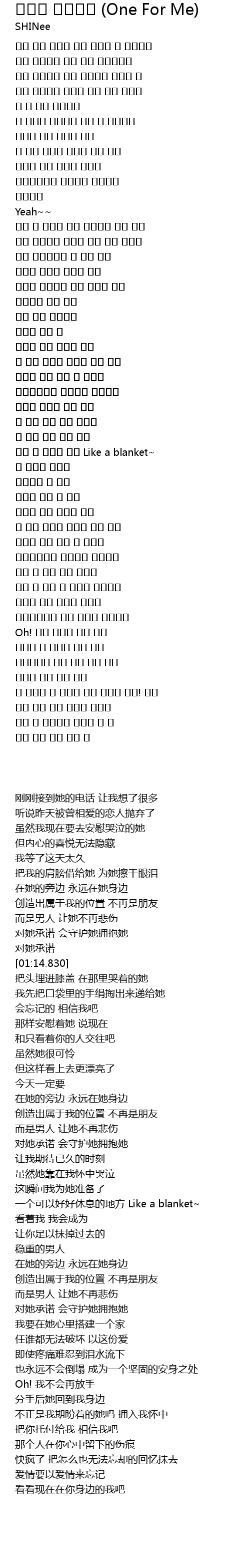 | [02:11.846] | 좋은 쉴 자리가 됐어 Like a blanket~ |