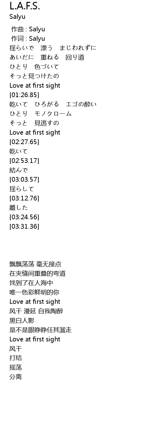 [00:01.00] zuo ci : Salyu