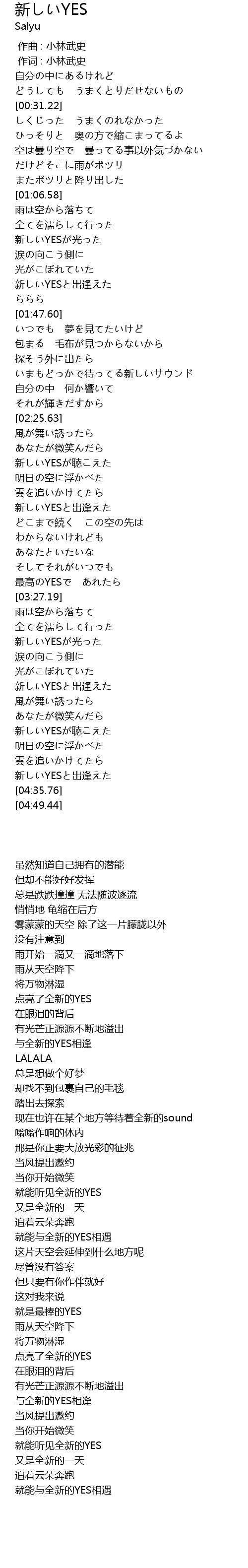 | [04:00.85] | 新しいYESと出逢えた |