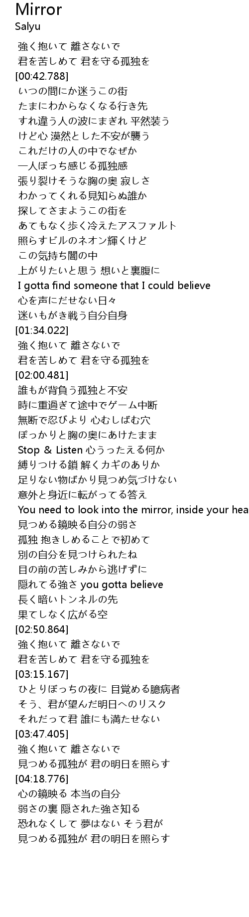 | [02:27.121] | You need to look into the mirror, inside your heart |