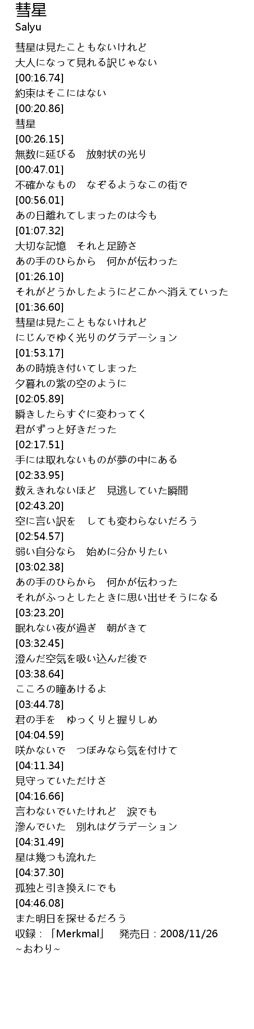 | [04:55.64] | 収録:「Merkmal」 発売日:2008/11/26 |