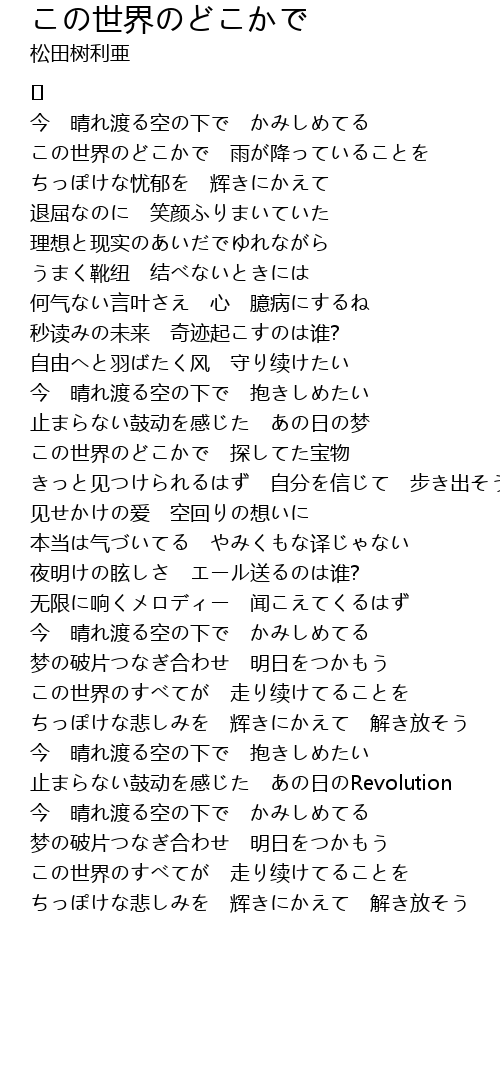| この世界のすべてが 走り续けてることを | |